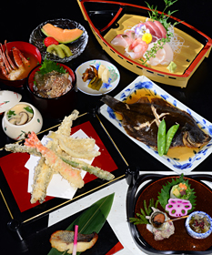 濱進自慢のお刺身や天ぷらにくわえ、焼物または蒸し物が付いたコース料理をお楽しみください。